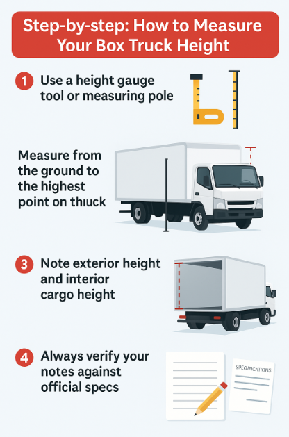 To prevent high cost errors, they should know how to apply a proper height measurement method. Start with a height gauge use tool or a measuring pole. Measure from the ground to the tallest point on the truck, including rooftop air conditioning units or auxiliary equipment. Note both the exterior height and the interior cargo height, since loading docks may ask for cargo area height.